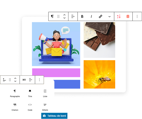 Nous concevons des sites WordPress pensés pour refléter votre identité de marque, atteindre vos objectifs et offrir une expérience utilisateur optimale.
